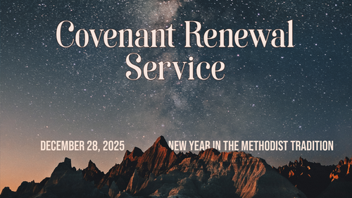 Get a jump on your New Year's resolutions by worshiping at our Covenant Renewal Service! This annual worship service is how Methodists begin a new year. We will hear again God's promises for us and recommit ourselves to following God. With relevant Scripture, powerful liturgy, and meaningful Communion, we will end 2025 and begin 2026 ready to live better into God's promises!